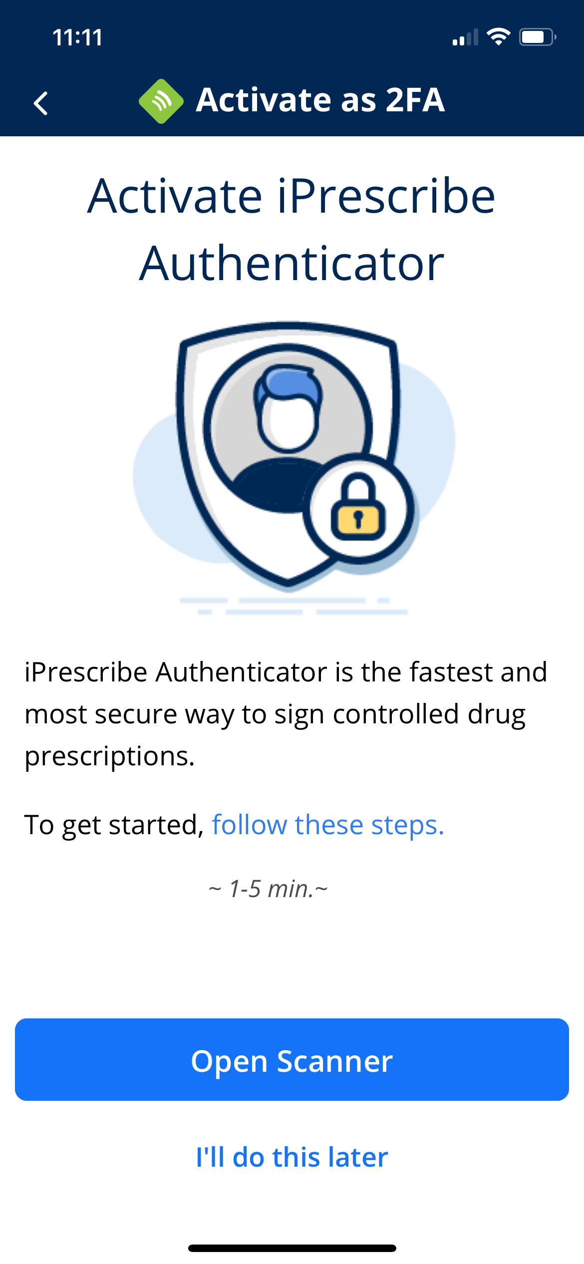 Log in to iPrescribe Authenticator anytime to set up the app.