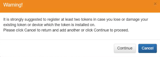 3. Click Add Token to add a second token to your account (recommended). Once you have done this, click Continue.