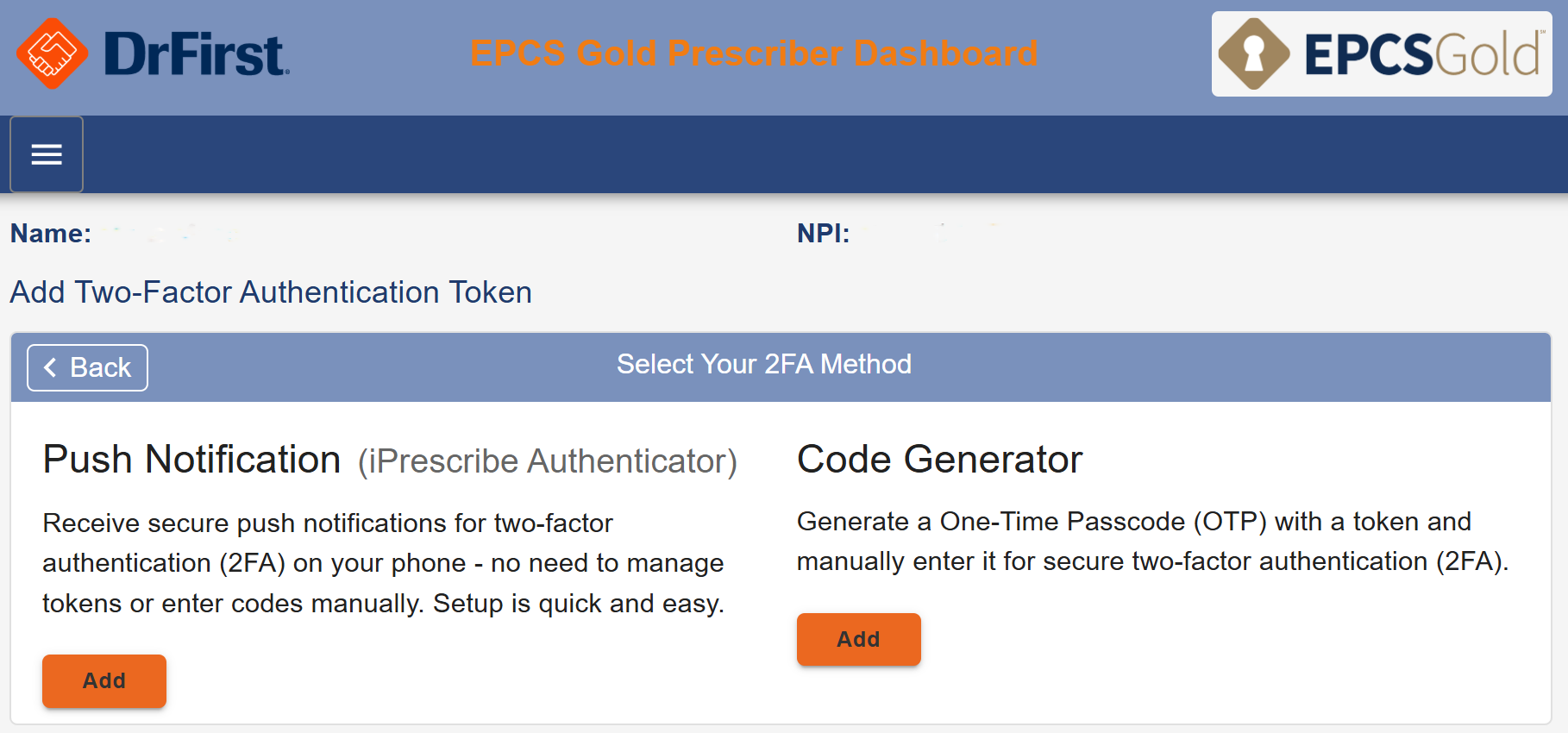 If you are adding the iPrescribe Authenticator first: