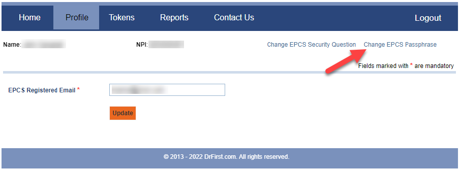 4. Click the Profile tab. Then select Change EPCS Passphrase.