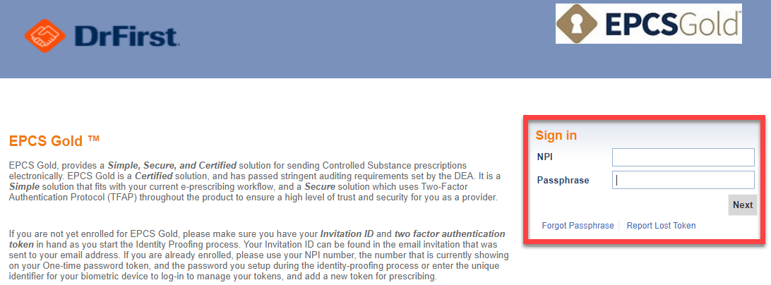 2. Log in with your NPI and passphrase.