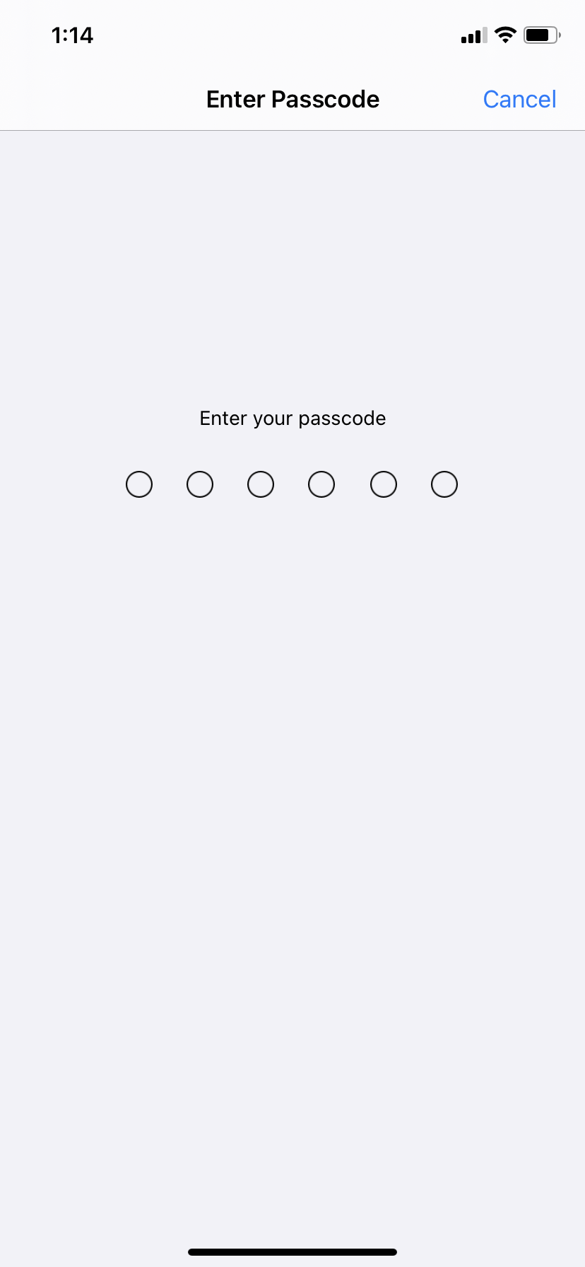 2. Enter the Passcode to your phone (passcode to unlock your phone). Then, tap Other Apps.