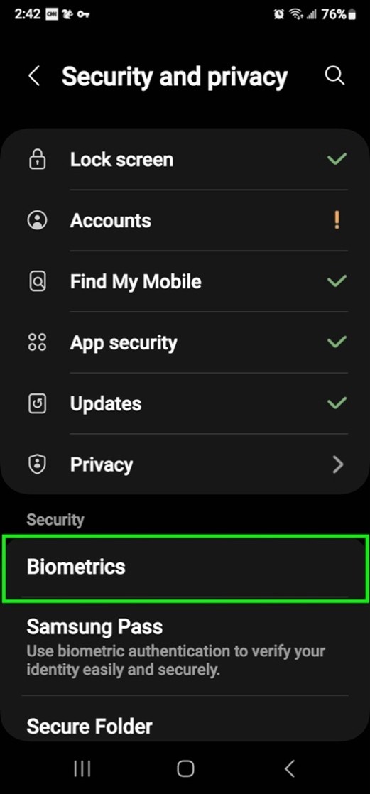 5. Once added, ensure the fingerprint scanner is active and enabled for app authentication.