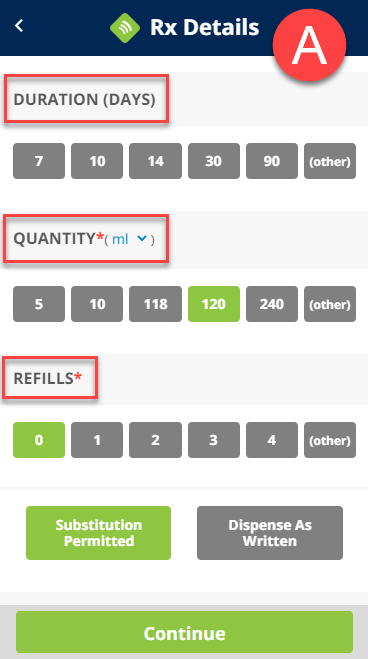 (D) Enter optional comments to the pharmacists, then tap Continue.