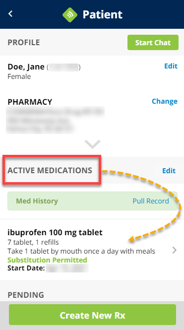 3. In the patient's profile, find the prescription you want to renew under Active Medications.