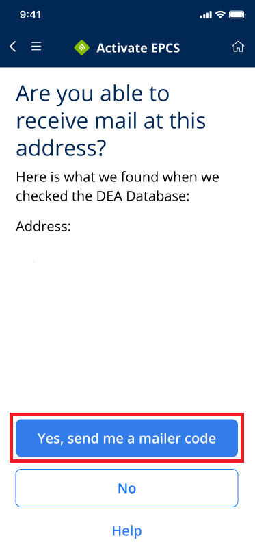 - Reconfirm your DEA-listed business address and select Yes to generate another letter to that address.