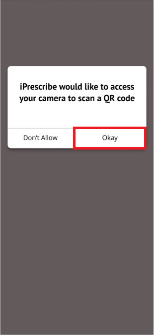 - If you choose to scan the QR code, allow iPrescribe to access your camera, then scan