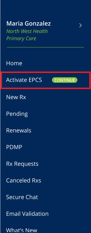 3. Select Activate EPCS.