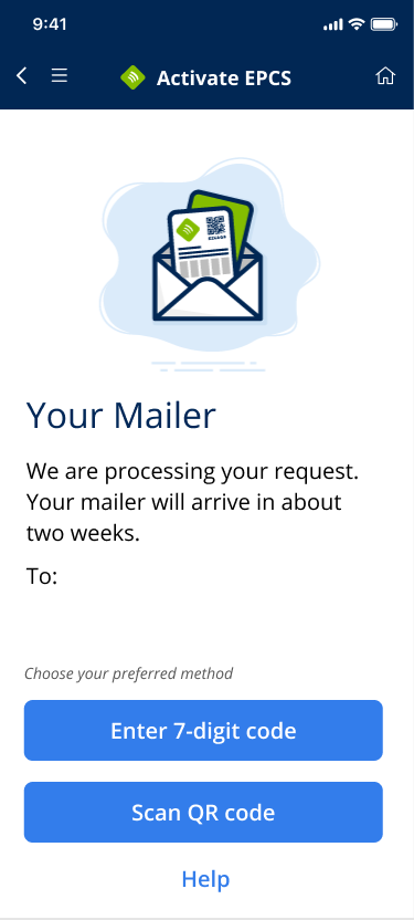 - The letter with QR code ("mailer") to complete the EPCS activation at your DEA-listed business address.