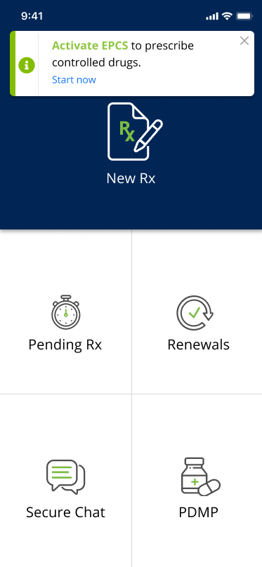 2. To begin, select Activate EPCS from the main menu or a banner ad notification.