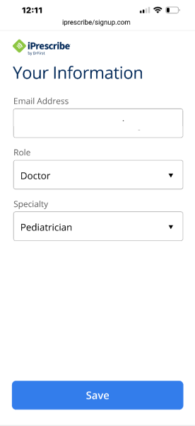 - Enter your practice email address. Note: You cannot use this same email again to create another iPrescribe account.