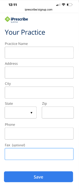 Enter your practice information and click Save.