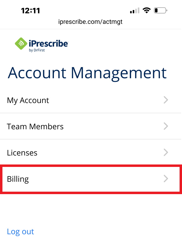 1. Log in via the web at https://account.iprescribe.com/or go to Account Management in the app