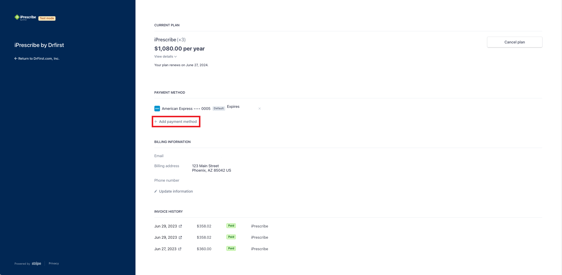 - Log in to Account Management directly: www.account.iprescribe.com/account-management.