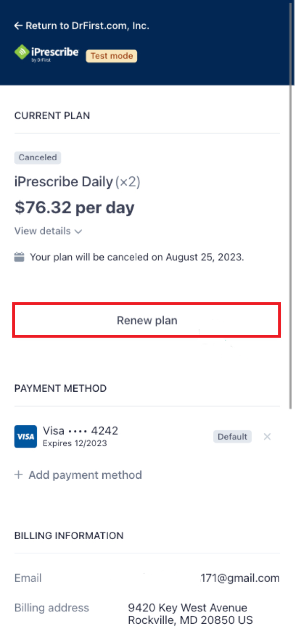 Thus, you will still have access to iPrescribe until the current invoice expires. Reference: Terms of Use (TOU).If you already canceled your automatic renewal of a subscription, you still have an active subscription, and you want to renew your subscription again: