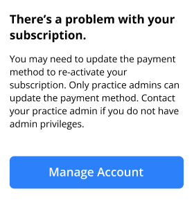 2. A pop up will prompt you to select Manage Account to add your payment information.