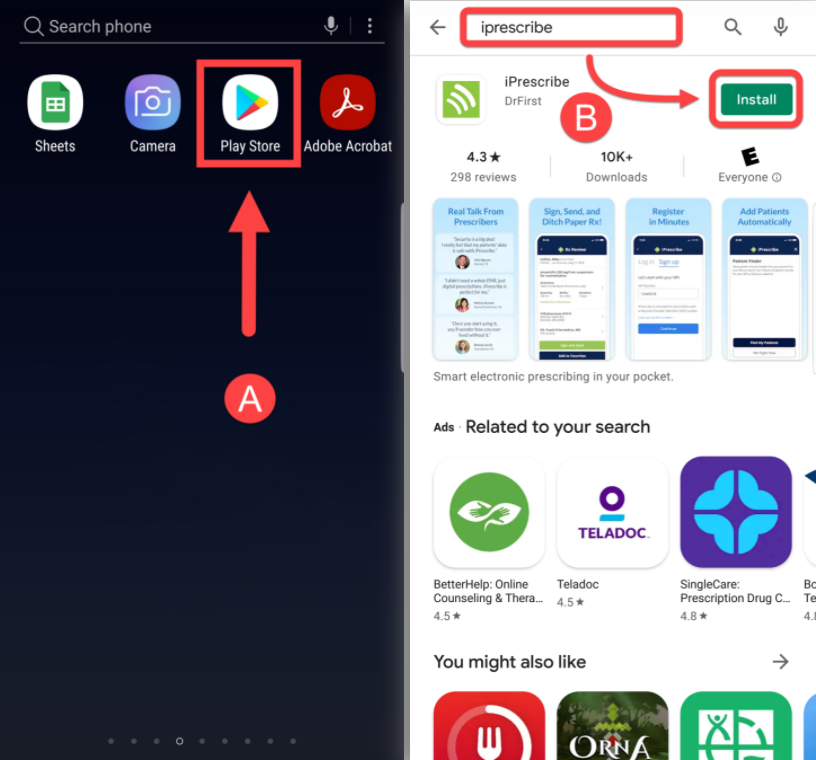 - Search iPrescribe in the search field at the top of your screen, then tap the Install button next to the iPrescribe app.