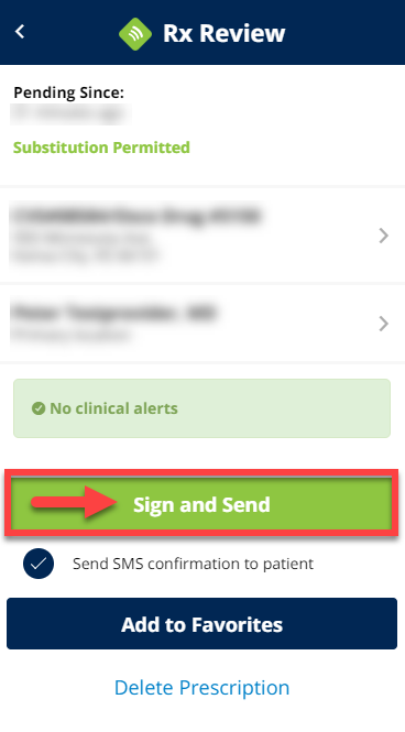 You can Sign & Send pending prescriptions from the patient profile screen.