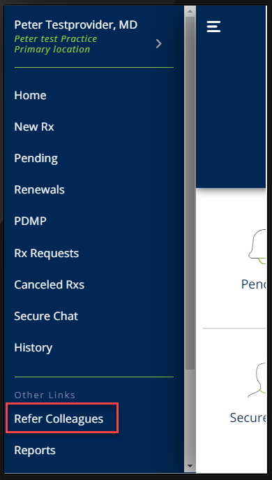 1. On the home screen, tap the menu icon at the top left of the screen. Then, tap Refer Colleagues.