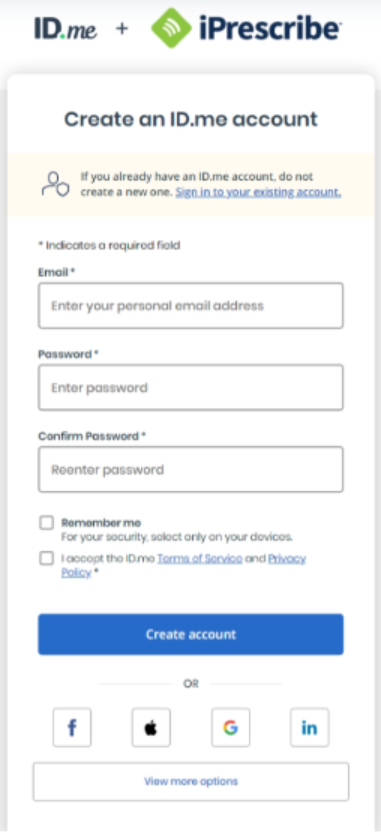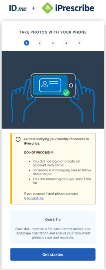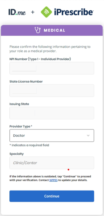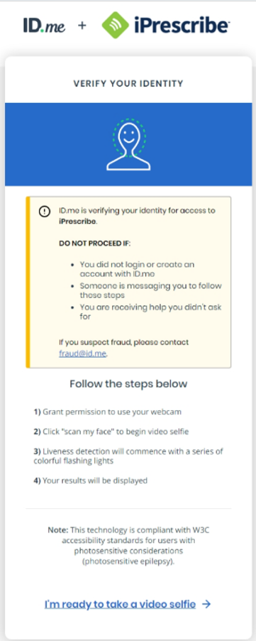 You will need to complete identity proofing (verification) via ID.me before you can e-prescribe.