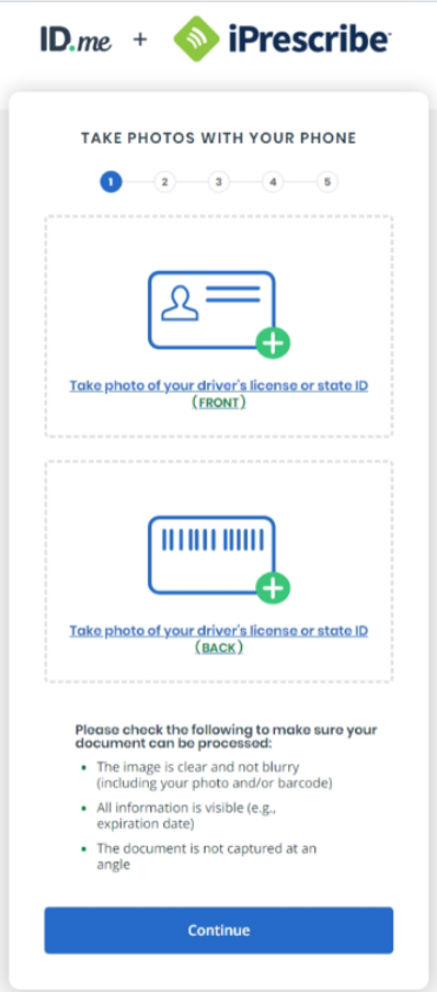 9. Take photos of your ID and select Continue