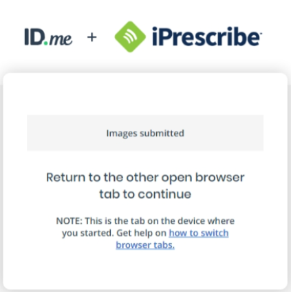 16. After you successfully finish identity proofing with ID.me, go back to iPrescribe.