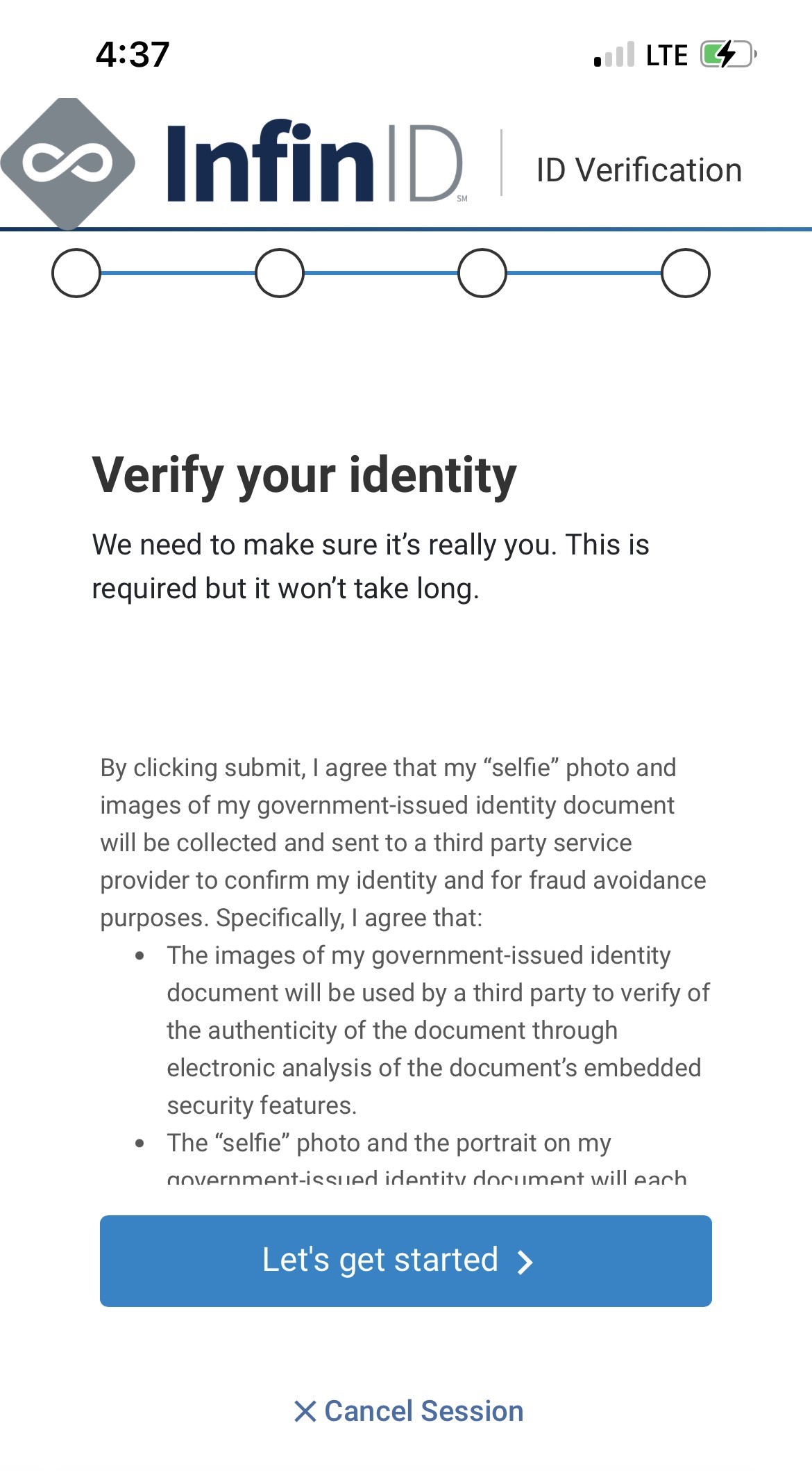 - You will see InfinID across the top of your screens as you progress through the process.
