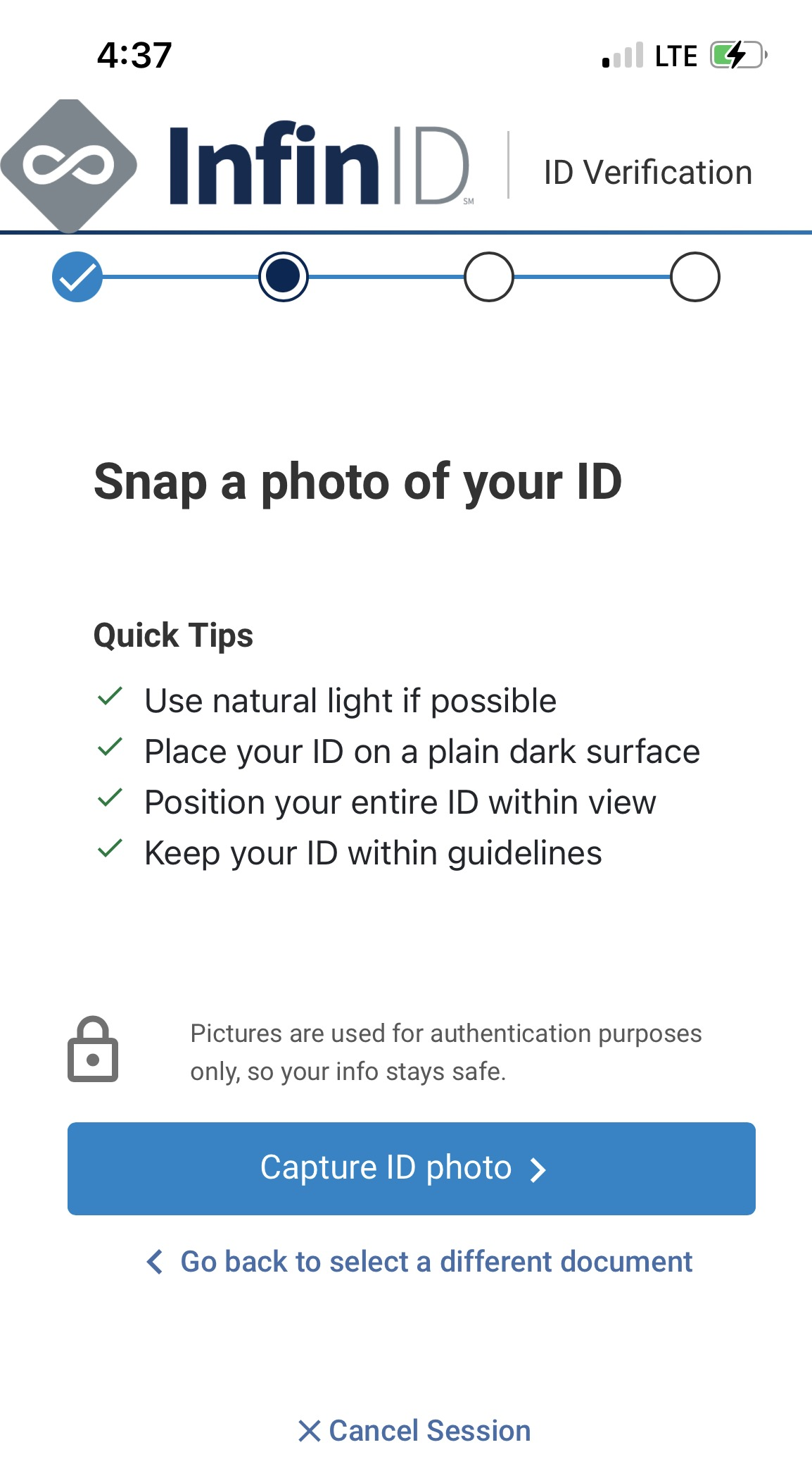 - Use a phone or tablet to take photos of your identification.