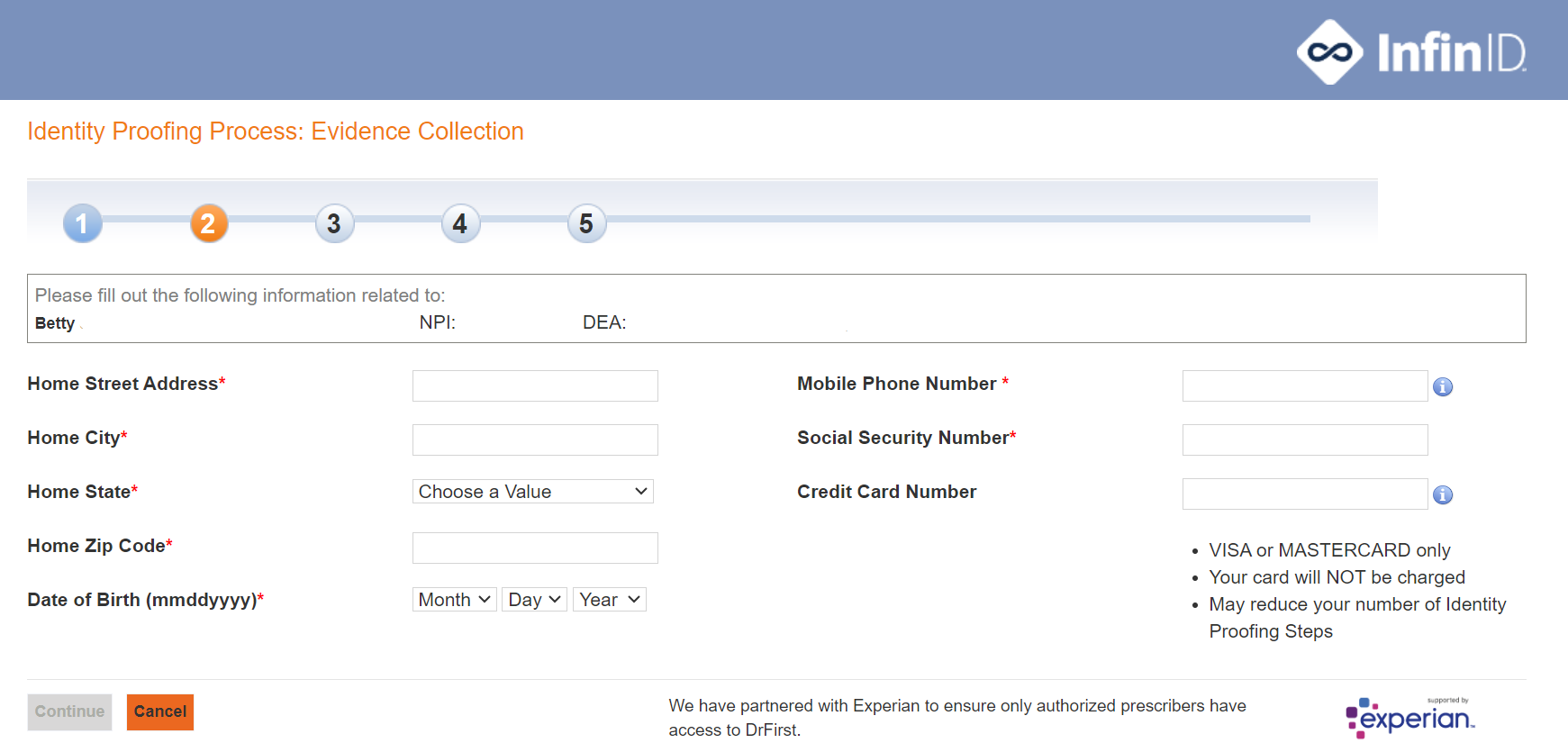 Passing identity proofing and EPCS onboarding is dependent on an exact match between the data you enter and what's in your credit report; Experian compares the two sets of data to "pass" you.