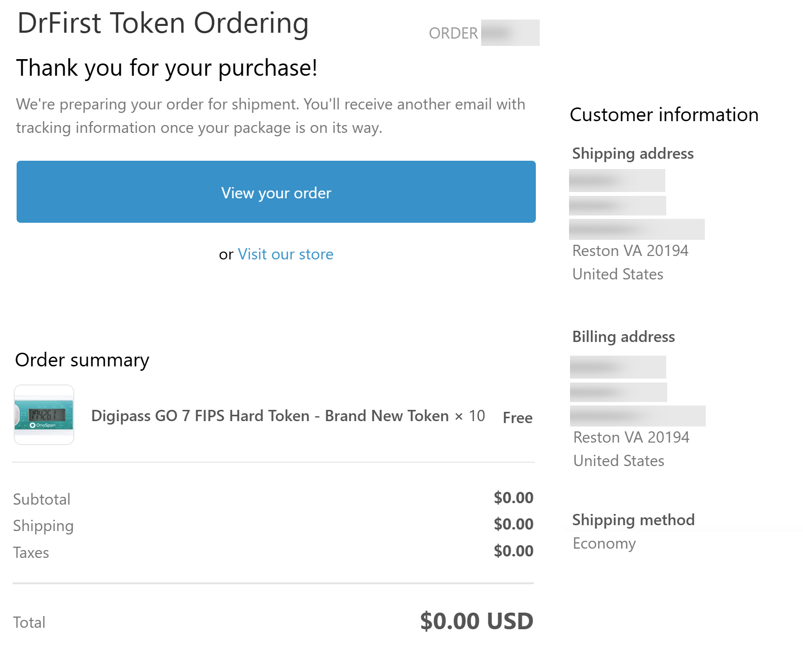 - Once the token order is shipped, you will receive another email containing a tracking number. Once the token order is delivered, you will receive a final confirmation email.